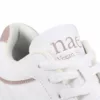 Con su diseño deportivo, sencillo y atemporal este calzado resulta un modelo versátil para múltiples tipos de ropa, de un amplio elenco de colores, y para muy distintas ocasiones. Su corte está compuesto de varios paneles de distinto color y material, donde destacan el rosa y lila sobre un fondo blanco, y capas en microfibra efecto cuero con otras más esponjosas en poliéster. A modo de detalle lleva el logo estampado en la lengüeta.